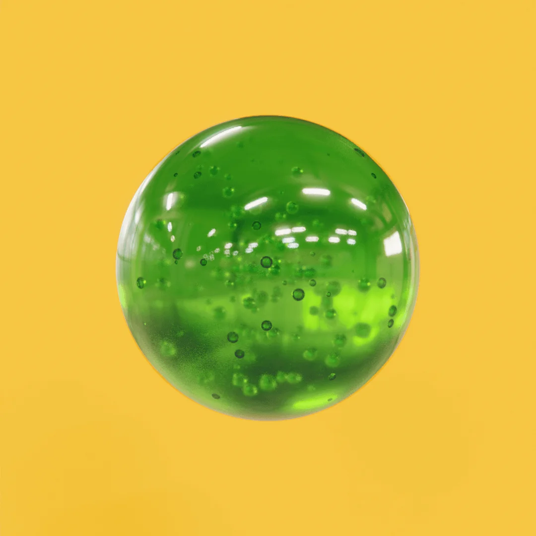 This product provides a stylized, physically-based slime material designed for Blender. The setup includes adjustable dynamic properties to customize the appearance of the slime surface, along with an integrated bubble particle system to add depth and active details to the material.
