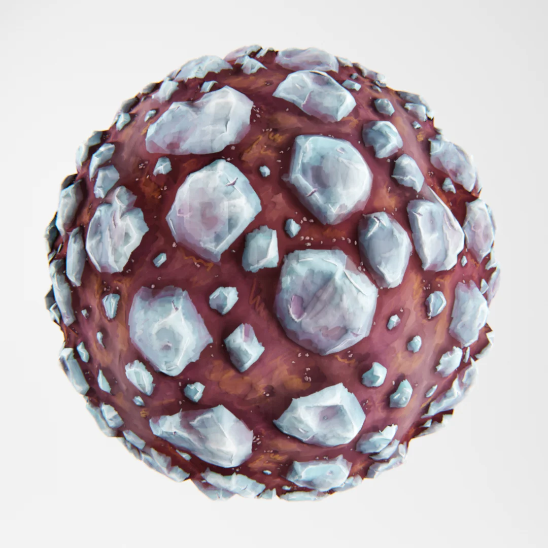 This collection provides a set of PBR-based stylized materials for Blender. Each material includes dynamic property controls, allowing users to modify specific attributes like color base and texture scale to fit different scenes. The set includes three distinct surface types: rocky soil, wood planks, and metal plates.