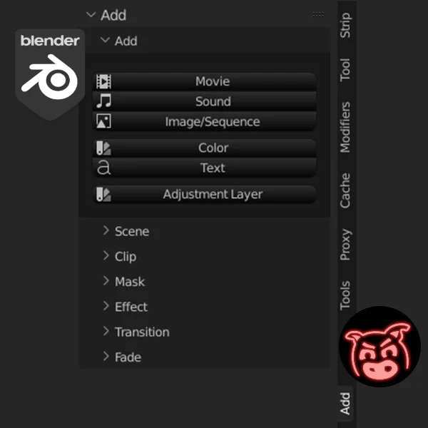 This add-on modifies the Video Sequence Editor in Blender by relocating the standard Add menu to the N-panel workspace tab. It consolidates the available sequence items into a single layout using accessible sub-panels, allowing users to insert elements directly without navigating through multiple nested dropdown menus.