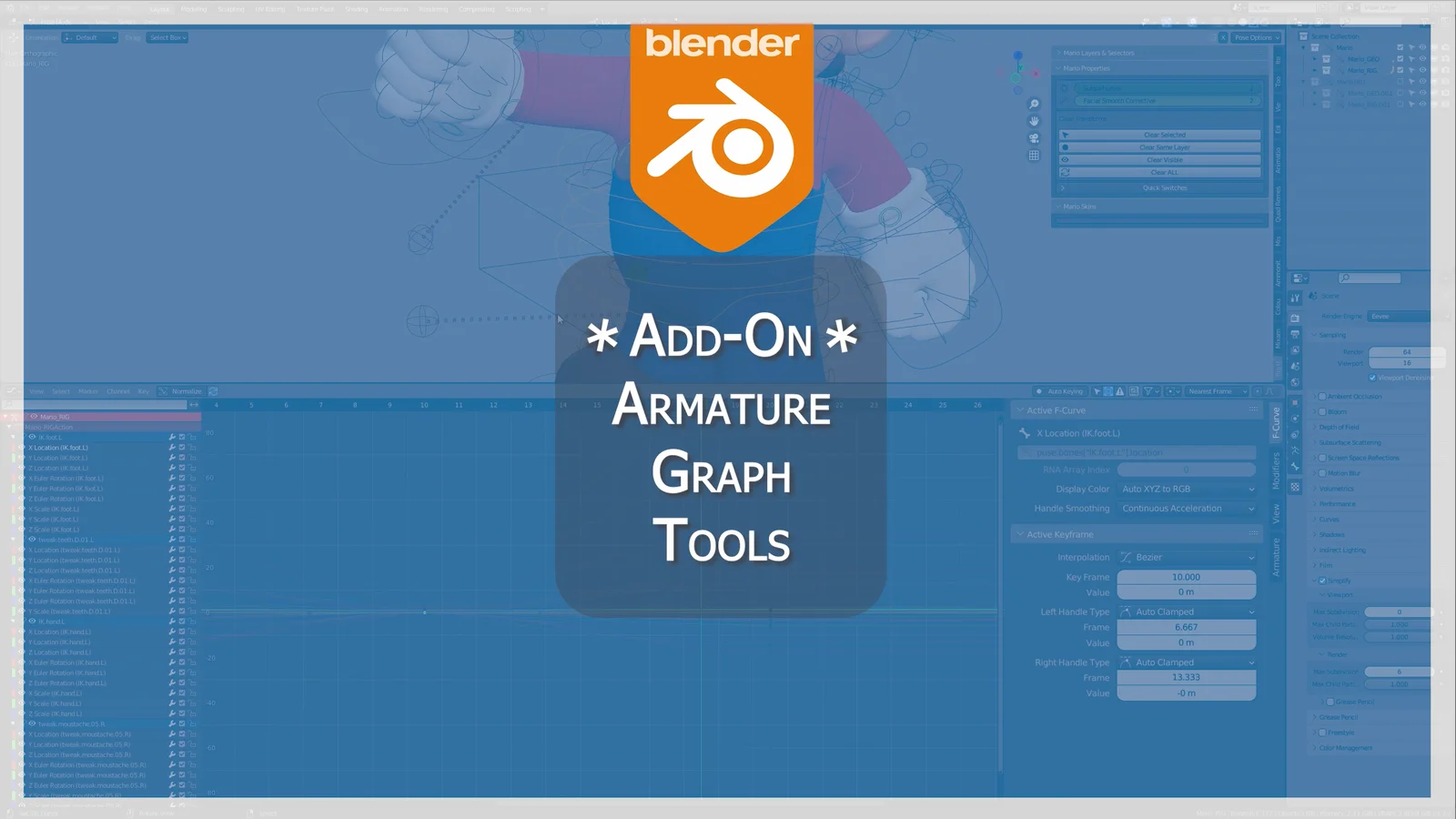 This add-on provides tools to manage large numbers of animation curves in Blender's Graph Editor. It helps organize the list of curve groups in the left panel, making the workspace easier to navigate when specific FCurves are hidden. Additionally, the tool includes synchronization features that link the visibility of FCurves in the Graph Editor to their corresponding armature pose bones in the 3D viewport. Users can configure this to synchronize pose bone visibility with either all visible FCurves or only the selected ones.