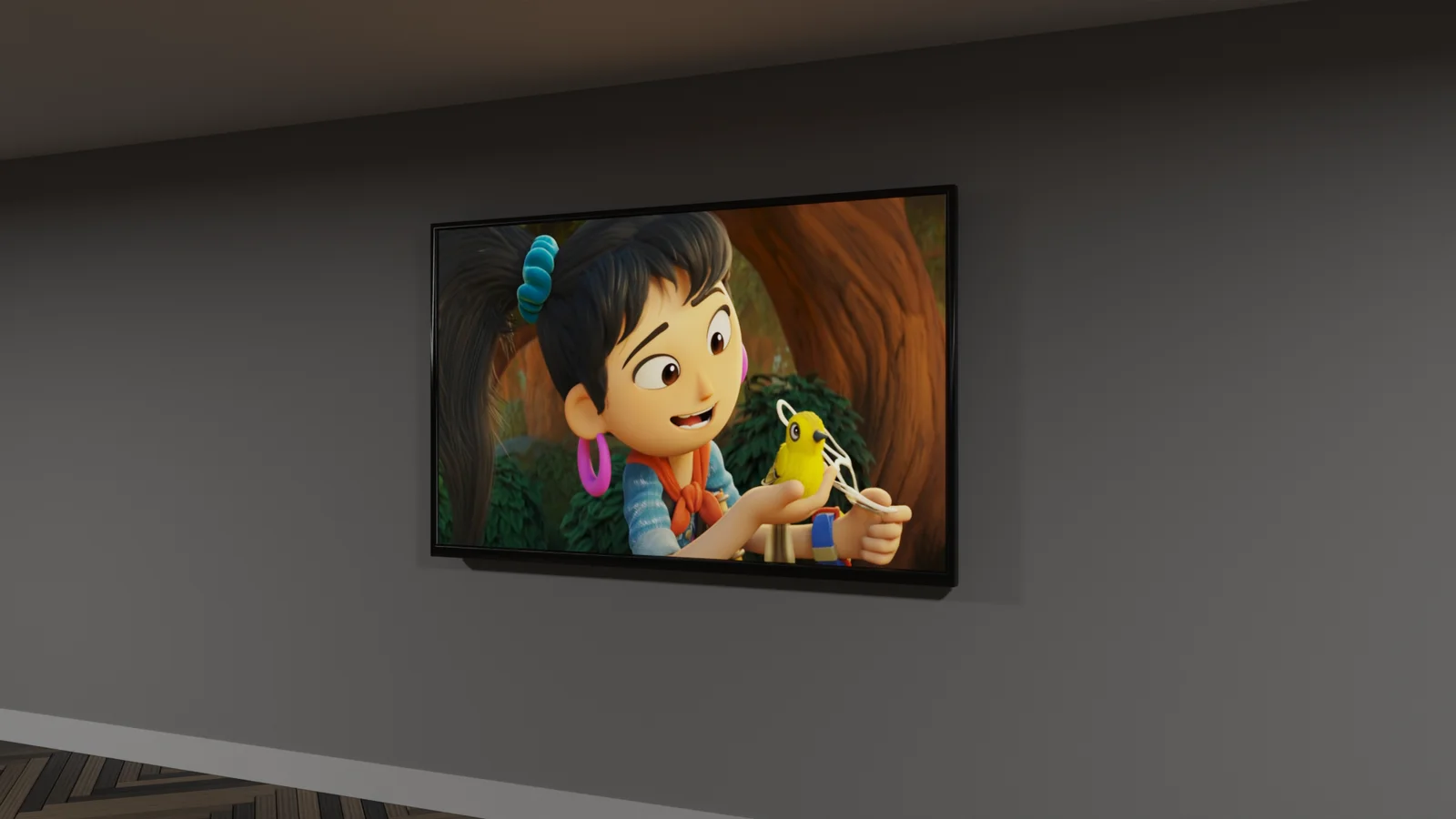The screens are set up with an easily replaceable image, defaulting to a screenshot from Blender's open movie Sprite Fright. These assets are optimized for mid to background placement, as the rear details of the televisions are not modeled and they are not intended for extreme close-up shots.