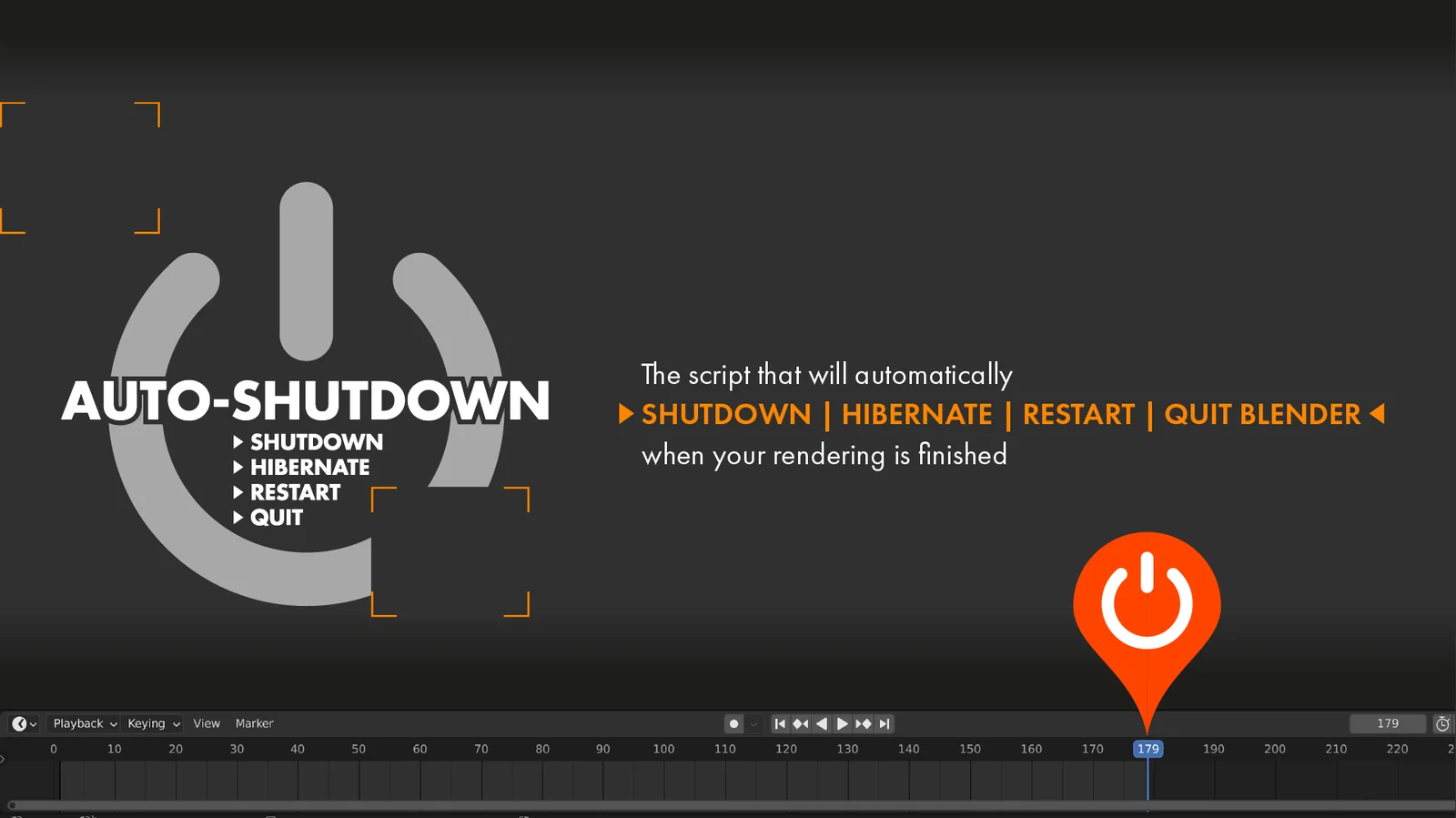 This add-on automatically shuts down your computer once Blender finishes rendering. It adds a dedicated panel to the user interface where you can configure the shutdown behavior for your completed animations or image sequences.