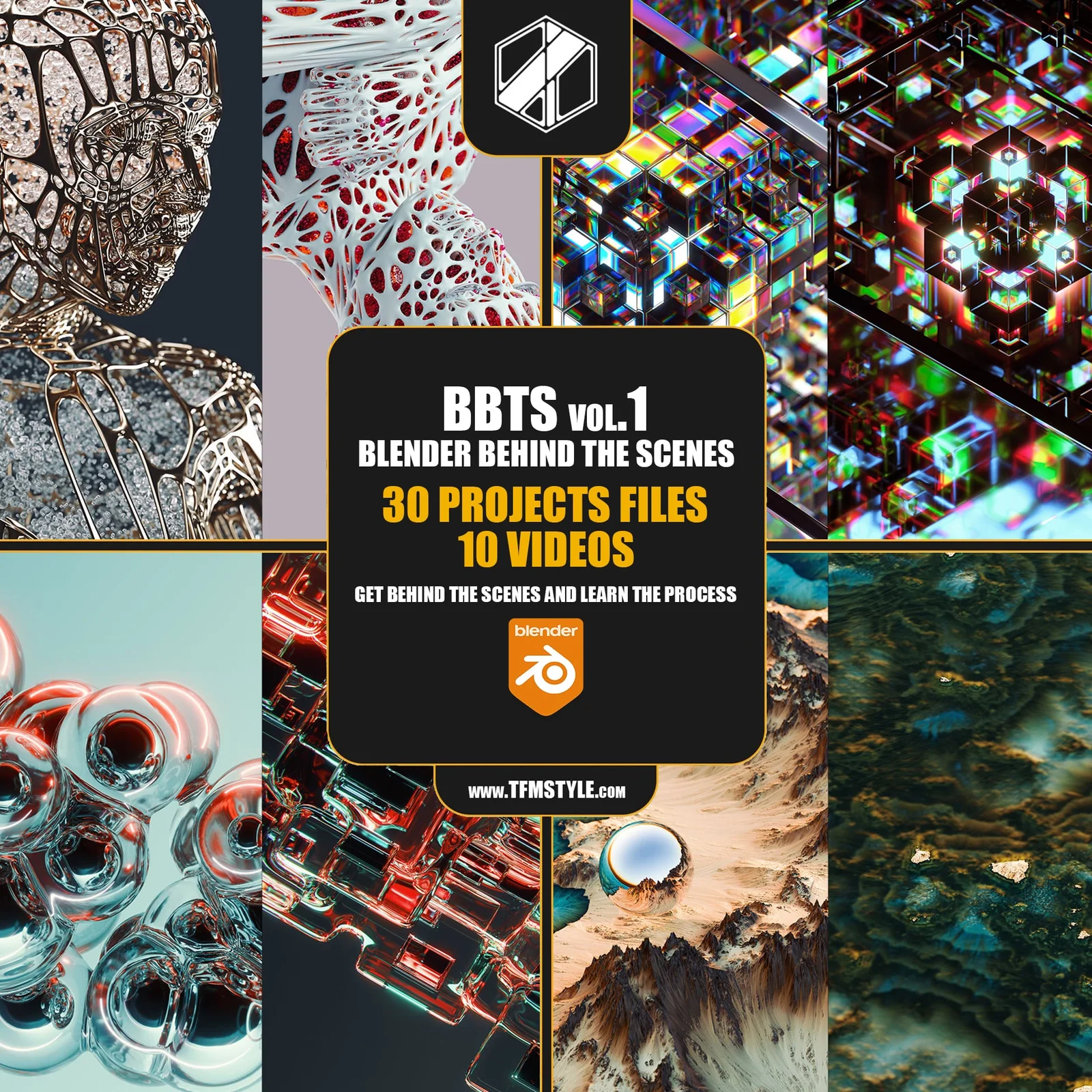 This training library provides ten behind-the-scenes videos that break down thirty different Blender projects. Across two and a half hours of content, the videos explore the creative process, workflow techniques, and specific setups for materials, geometry nodes, and compositing. The package includes thirty .blend project files covering modeling, shading, lighting, and rendering. The included scene files are designed for reverse-engineering and can be repurposed for commercial projects.
