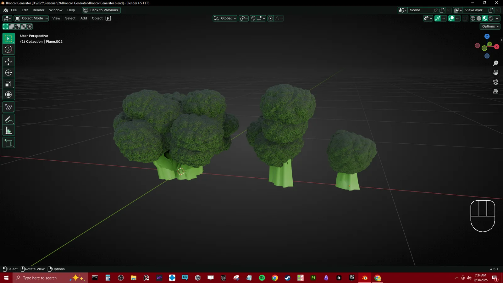 A Geometry Nodes system designed to generate procedural broccoli. The setup allows users to create customized broccoli florets for populating 3D scenes.