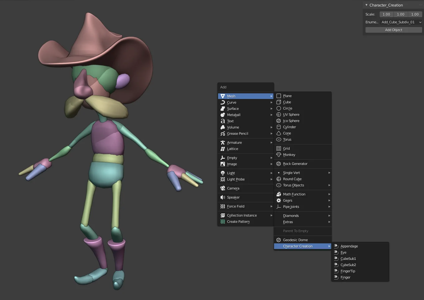 This add-on provides a set of pre-built meshes intended to assist in the initial blockout phase of character modeling. By installing the package through Blender's add-on preferences, users gain access to primitive mesh components that help establish proportions and skeletal structure before committing to detailed sculpting or complex topology.