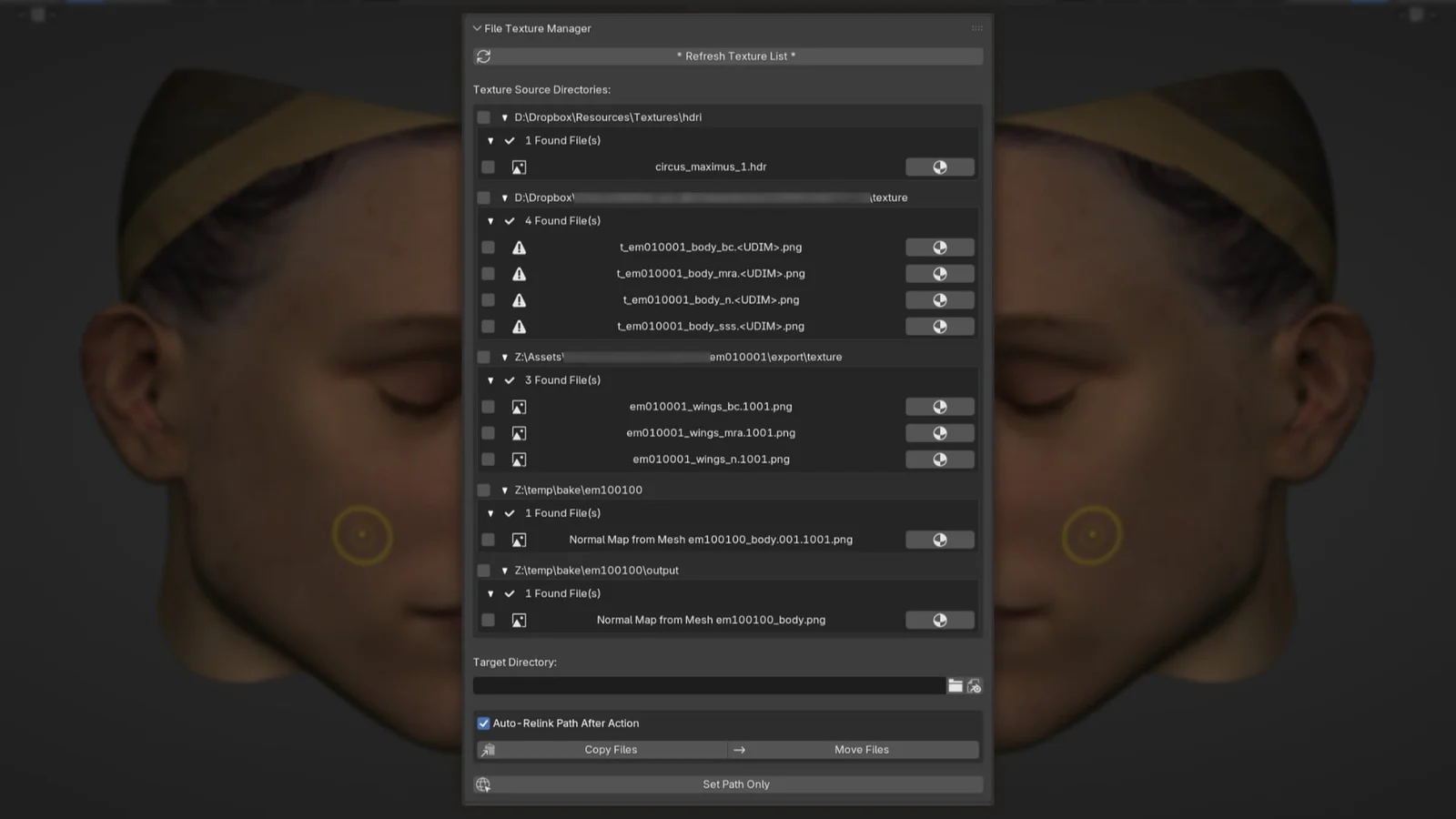 This add-on provides a centralized interface for managing external texture dependencies within Blender projects. Users can view a complete list of texture files organized by directory and quickly identify which materials utilize each specific texture. It includes file operations to copy, move, and retarget textures, making it useful for handling multi-resolution workflows. The tool also allows users to remap specifically selected textures, access texture properties directly, and includes full support for UDIM setups.