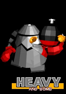This product provides fan-made 3D models of Heavy and Bomb from the game Knuckles' Chaotix, designed to emulate the low-poly visual style of Sonic The Fighters. The character models are provided in a single static pose and do not include animations or rigging for movement.