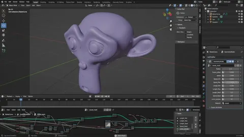 This Geometry Nodes setup generates a procedural sweat effect for 3D models. The system relies on user-defined curves placed on the surface of an object to determine the placement and flow of the moisture, creating droplets that follow the specified paths.