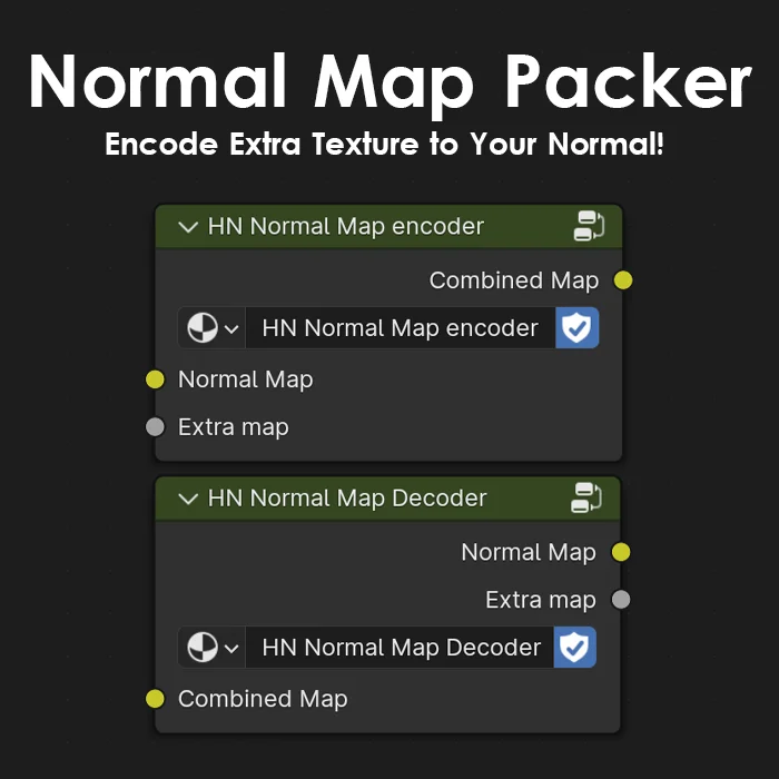 Normal Map Packer provides an encoder and decoder system for manipulating texture channels inside Blender. It allows users to store standard normal map data entirely within the red and green channels. This frees up the blue channel to hold an additional grayscale texture, which can help optimize memory usage in complex projects. The underlying calculation method utilizes polar coordinates to handle the encoding and decoding processes.