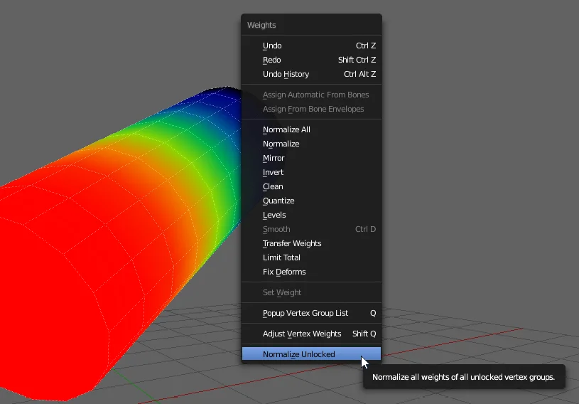 This add-on introduces a new Weight Paint tool to Blender that functions similarly to the built-in Normalize All operation, but specifically ignores locked vertex groups. It normalizes weights exclusively between unlocked groups. This operator is particularly useful for complex meshes containing multiple vertex groups for different purposes, such as skinning, hair particle systems, and modifier influences, enabling users to normalize specific areas without affecting locked structural groups.