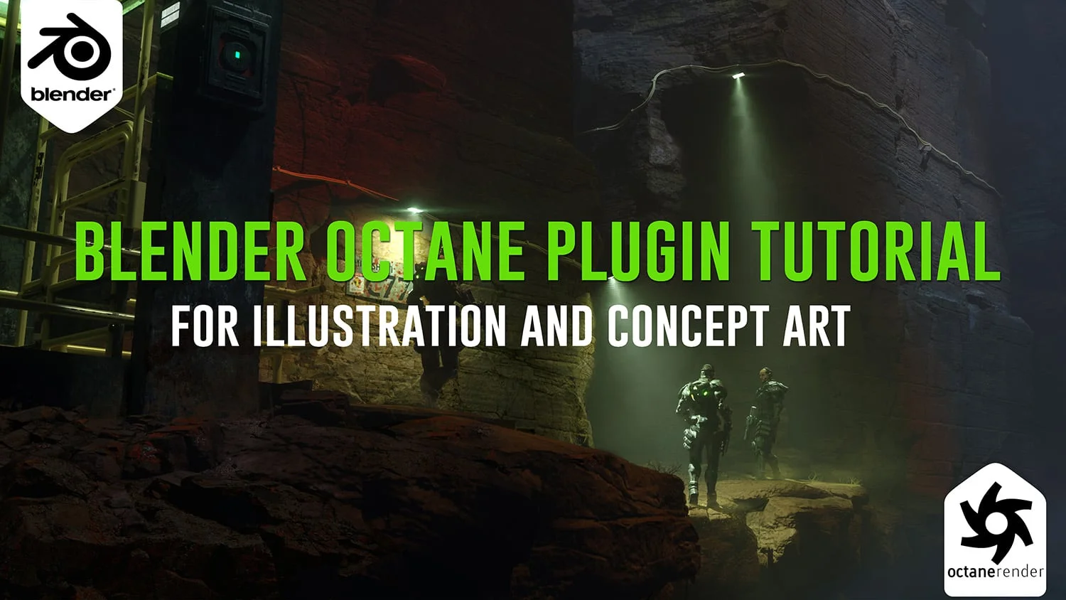 This three-hour video tutorial covers techniques for creating environment illustrations and concept art using the Blender Octane plugin. The course focuses on landscape design, demonstrating node systems and material setups on simple geometry. Topics include mixing shaders with texture masks, importing Quixel Megascans assets, setting up various fog types, and applying displacement.