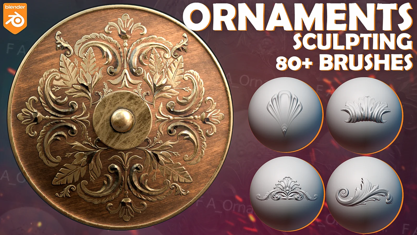 A collection of 83 custom brushes designed for Blender's sculpt mode. The pack includes brushes configured with custom textures, settings, and thumbnails specifically tailored for adding ornamental details to 3D models. These brushes are suited for detailing surfaces such as armor, weapons, and medieval architecture.