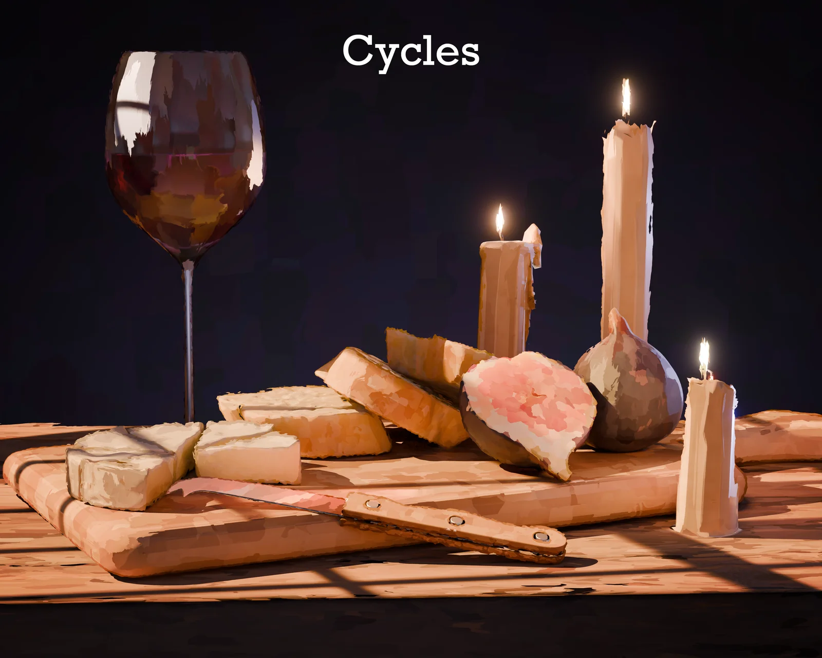 A fully procedural shader system designed to generate painted brush stroke effects in both EEVEE and Cycles. It utilizes two main shader node groups to handle normal faceting and procedural texture generation, establishing the base painterly look. The package also includes an Outline Detection geometry nodes modifier that coordinates with the shader nodes to create brushed outlines along the edges of models.