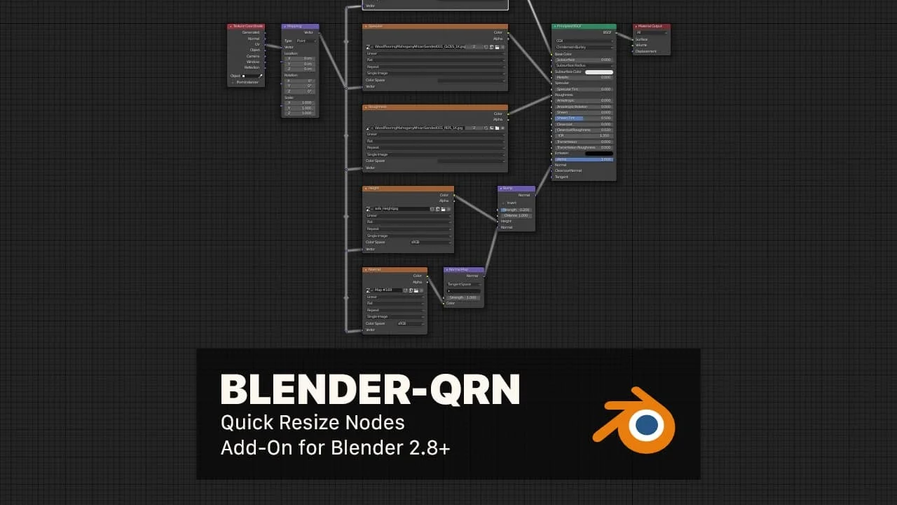 Quick Resize Nodes is an add-on that installs a dedicated panel in the Shader Editor sidebar to streamline node organization. By selecting one or more nodes, users can quickly assign uniform widths to keep their node trees tidy.