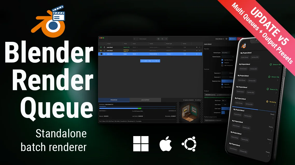 Render Queue is a standalone desktop application designed to automate batch rendering in Blender. It allows users to queue multiple shots, select specific scenes or cameras, and render individual view layers to disk without manual intervention.