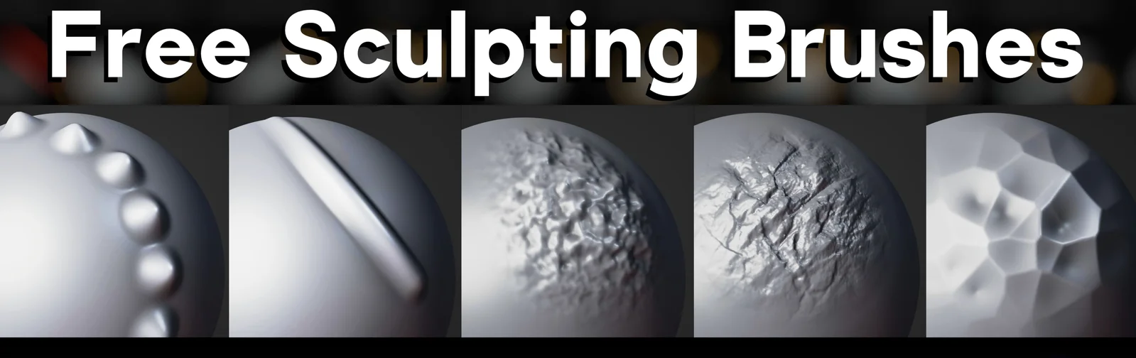 This collection provides five custom brushes designed for Blender's sculpt mode. The pack includes preset assets for applying dots, noise, lines, rocks, and Voronoi patterns to meshes. It also includes a rock displacement map and pre-rendered thumbnail images. The brushes are formatted as asset library files, complete with a catalog structure for immediate integration into the Asset Browser.