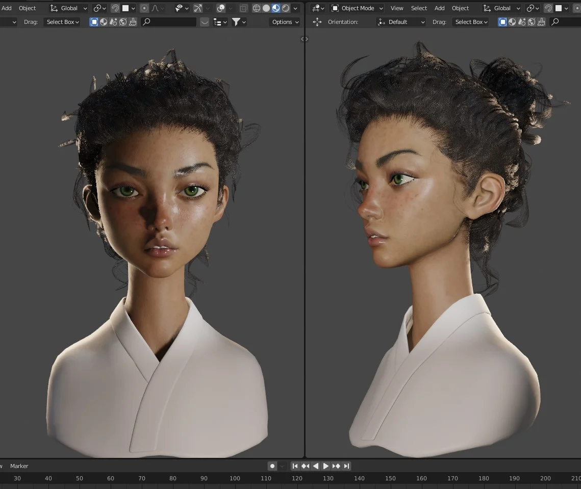 A seven-hour, un-narrated video demonstrating the complete process of modeling a semi-realistic portrait in Blender. The recording captures the workflow at 1080p resolution and utilizes the Cycles render engine. The package includes the final project file for reference and study.