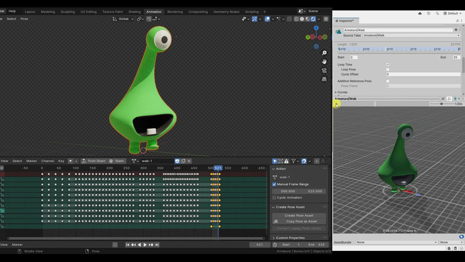 This tutorial covers defining animation actions in Blender and exporting them for use in other software. It demonstrates how to group frames and keyframes into reusable actions, utilizing animation cycles like walking or looking around. The guide also details exporting the 3D model and its associated actions in FBX format, followed by importing the asset into the Unity 6 game engine. The content is provided as a text-based PDF.