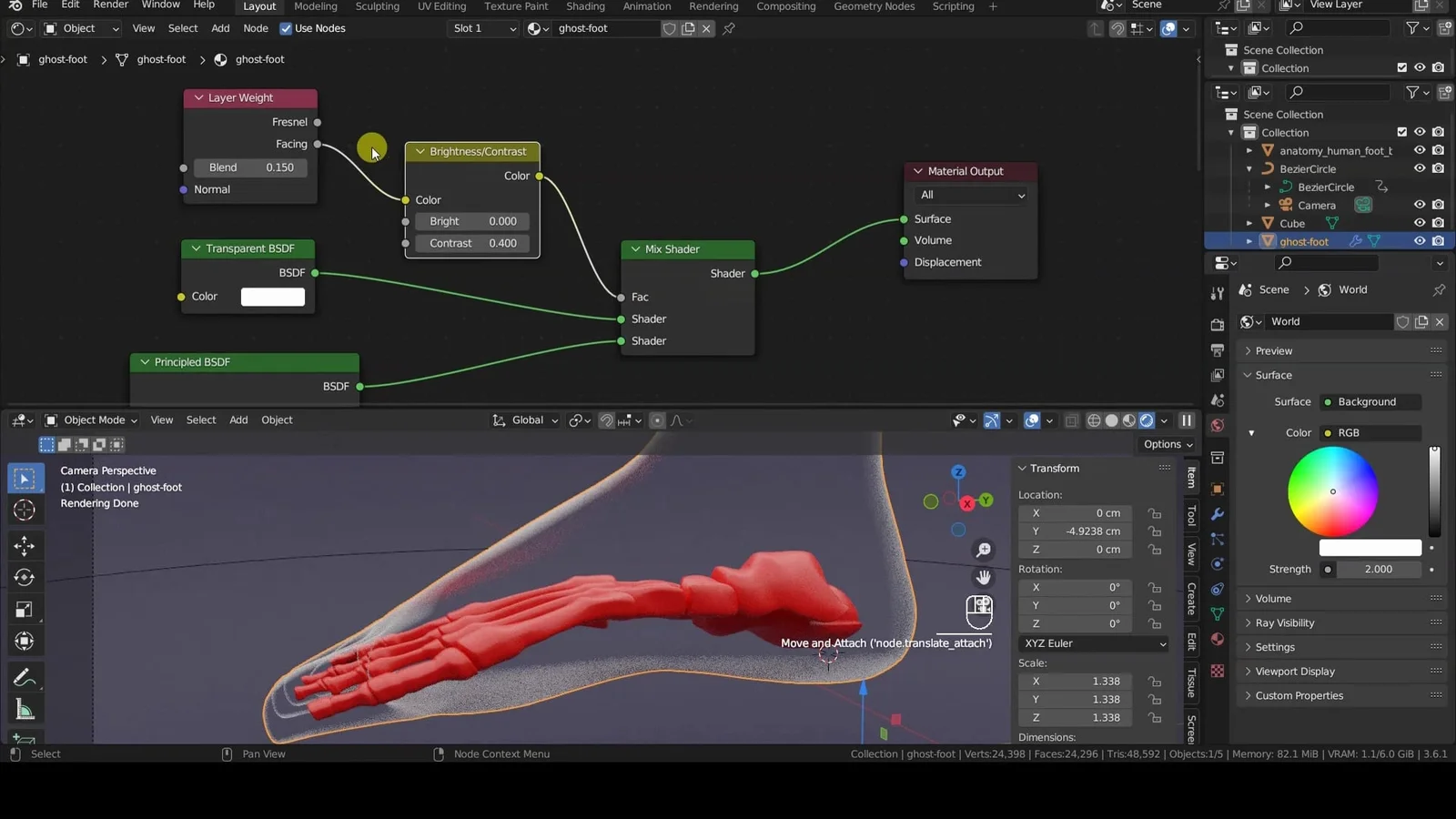 This text-based PDF tutorial explains how to create a transparent ghost silhouette material effect in Blender. The guide demonstrates how to configure shader nodes to make object faces transparent based on their orientation relative to the camera view. This specific technique highlights the outer boundary of an object while allowing objects placed inside it to remain fully visible. The tutorial is demonstrated using the Cycles rendering engine.