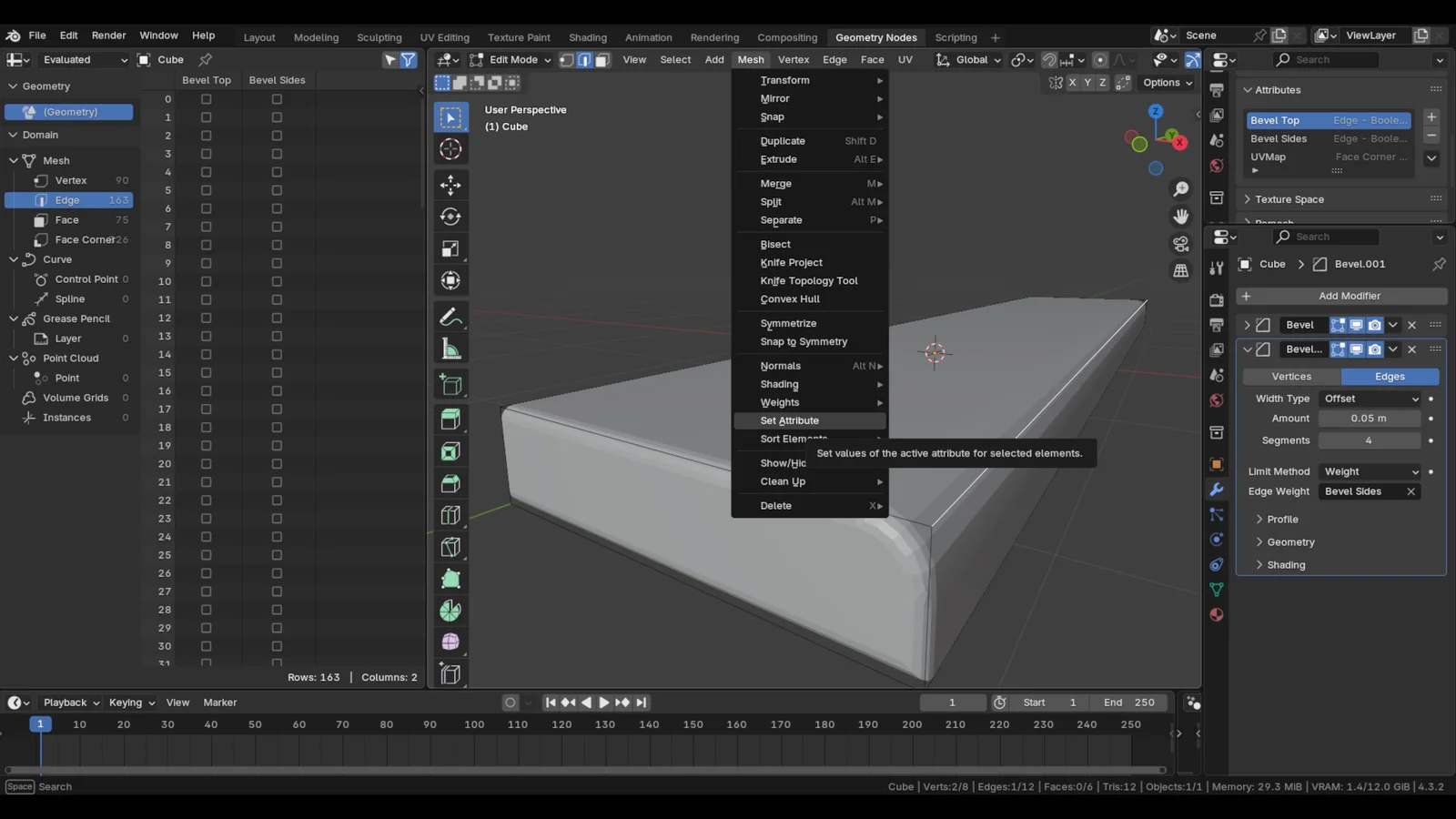 This video tutorial and accompanying PDF guide demonstrate how to define custom attributes for object edges in Blender 4.3. It covers the process of assigning these attributes within the Edge Weight section of Bevel modifiers, enabling a non-destructive workflow for applying bevels to specific edges of a 3D model.