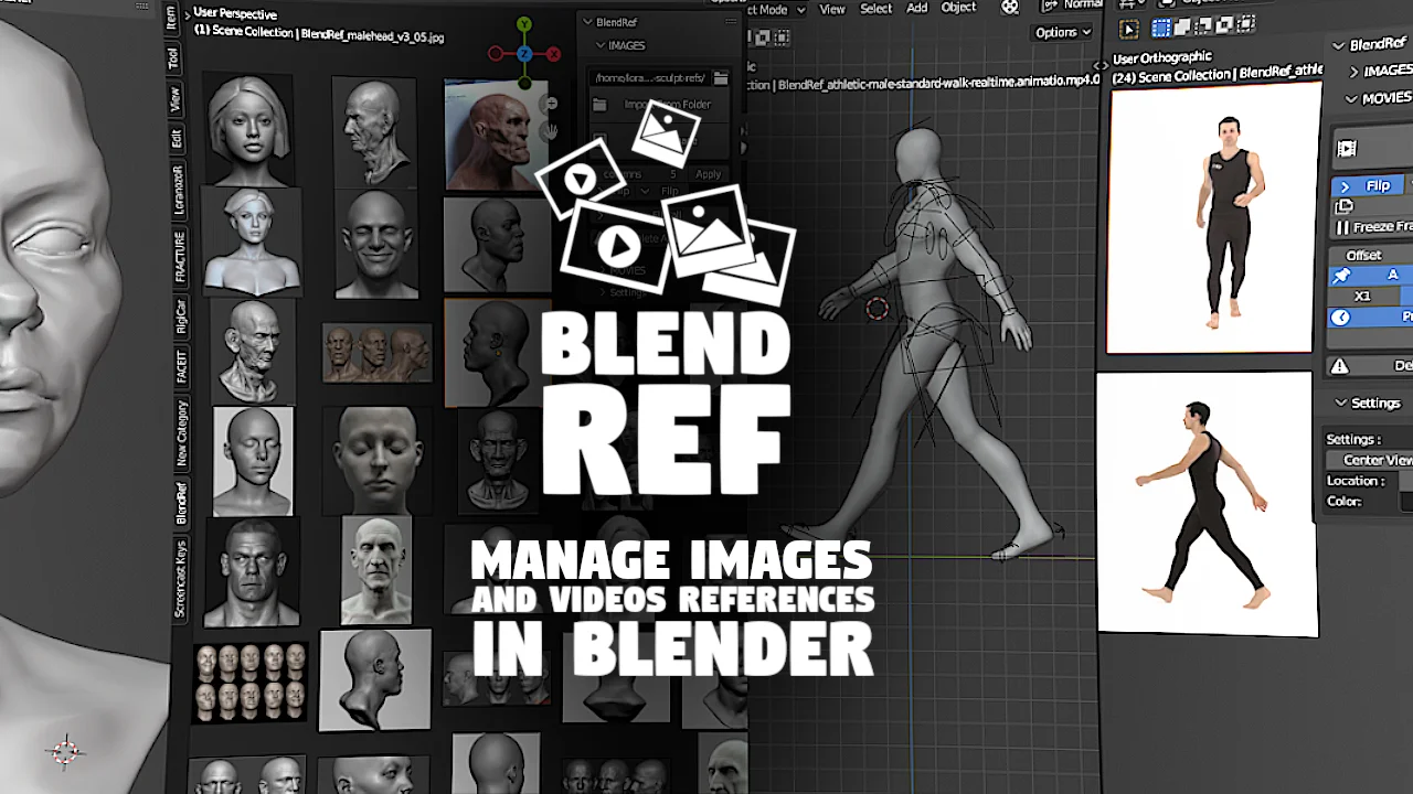 BlendRef is an addon that integrates image and video reference boards directly into the Blender viewport. It functions similarly to standalone reference applications, allowing users to view and organize reference material without leaving the 3D workspace or managing overlapping application windows.