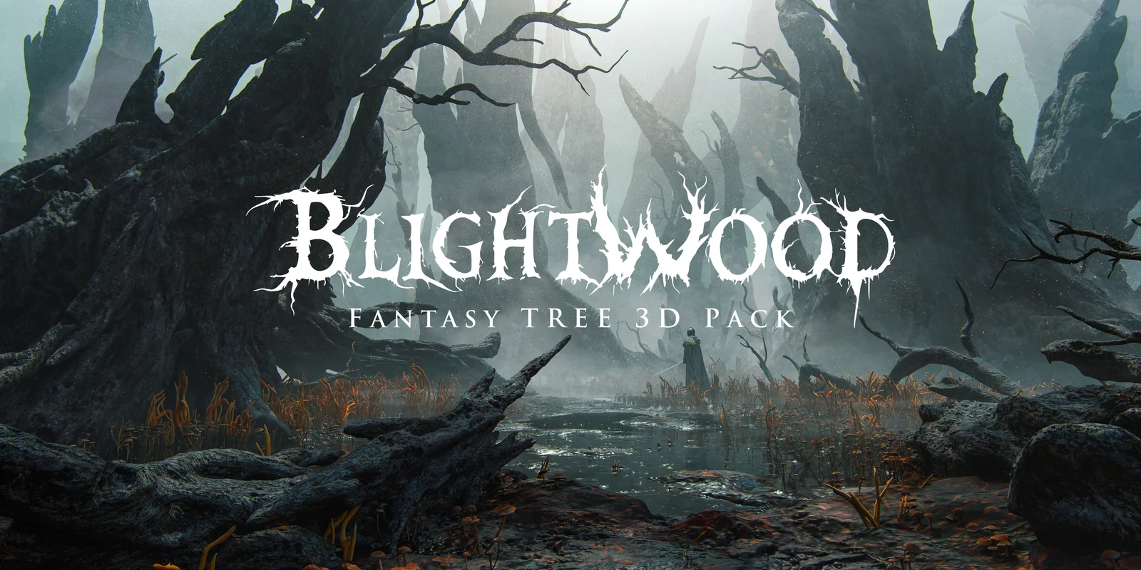 The Blightwood pack provides 20 unique 3D models of rotten and decayed trees, logs, and branches. Designed for dark fantasy, horror, and post-apocalyptic settings, the collection includes 11 tree stumps and hollows, four ground logs, and five modular dead branches for kitbashing. The assets come with 4K PBR textures capturing realistic bark and organic decay, with optimized lower-resolution versions included for better performance. The pack is pre-configured for the Blender Asset Browser and includes mid-resolution and low-resolution meshes, as well as the original high-resolution OBJ sculpts.