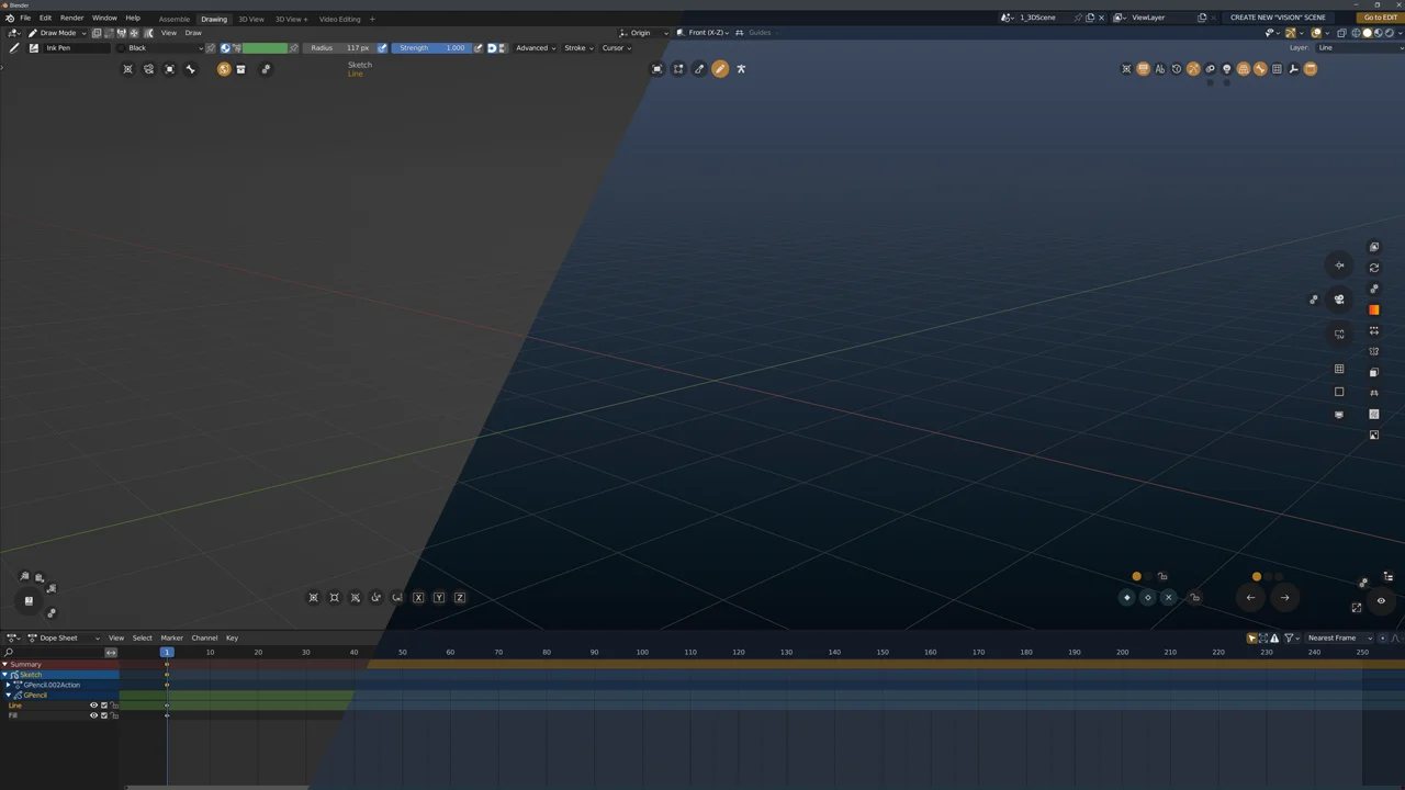 A custom user interface theme that applies a blue and orange color scheme to Blender. This visual configuration replaces the default layout colors and was originally created to complement the VISION GP extension.