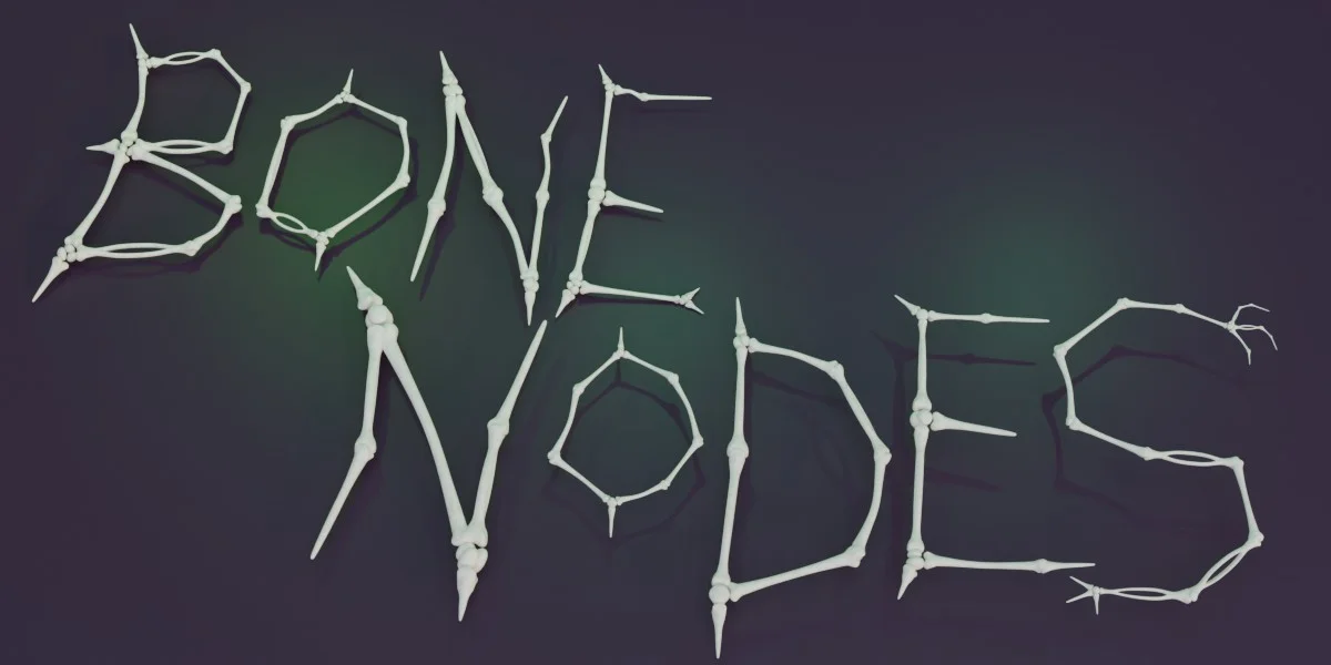 Bone Nodes is a Geometry Nodes modifier for generating stylized skeletal structures. The system works by converting edges into individual bone segments, allowing users to build skeletons by extruding and moving vertices in edit mode. It is designed for fast, intuitive creation rather than anatomical accuracy, and it interacts predictably with standard modifiers like Subdivide and Mirror.