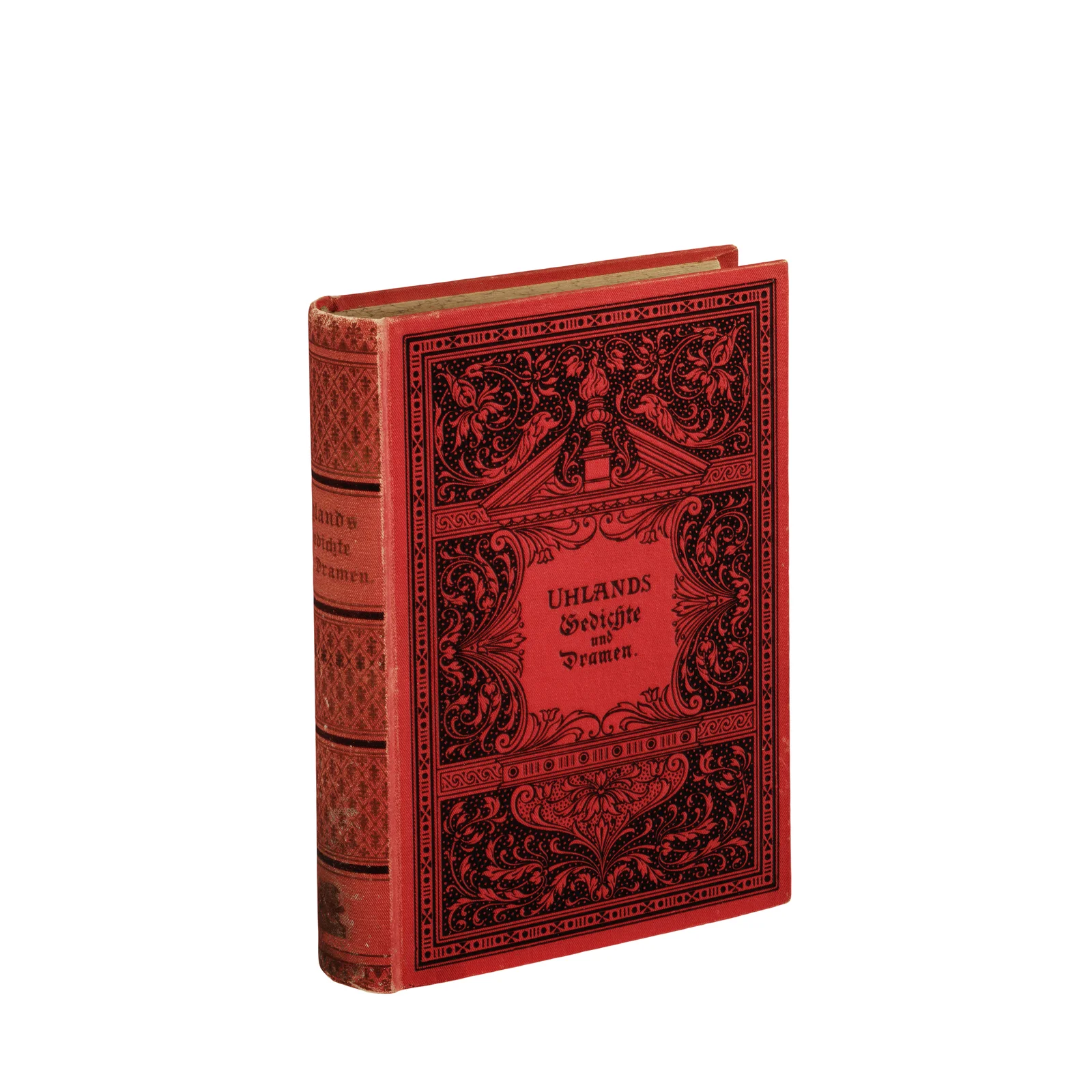 A 3D scanned model of the book "Uhlands Gedichte und Dramen." The mesh has a polygon count of 31,000 and includes texture sets at both 4K and 8K resolutions. The materials are configured for use with Blender's Cycles and EEVEE rendering engines, as well as Octane. The physical dimensions of the scanned book are 9.7 by 12.7 by 2.4 centimeters.