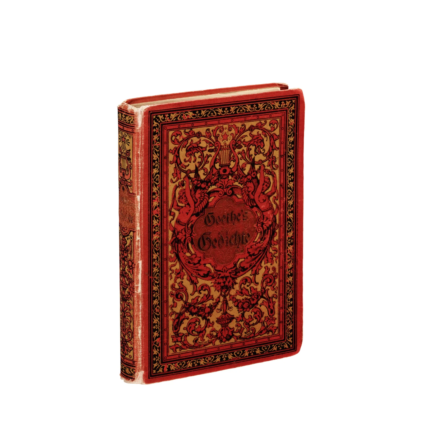 A 3D scanned model of the book Goethes Gedichte. The mesh has a polycount of 60,000 and measures 9.6 x 13.5 x 2.1 cm. It includes texture maps available in 4K and 8K resolutions, with setup support for Cycles, Eevee, and Octane render engines.