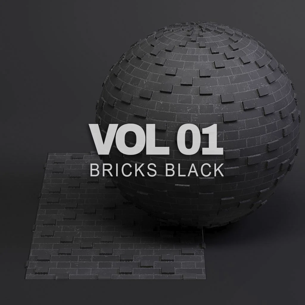 This collection provides five distinct black brick material sets. The materials are supplied as structural textures accompanied by glossy, bump, and displacement maps. The pack includes approximately thirty individual texture files suitable for use in standard rendering engines.
