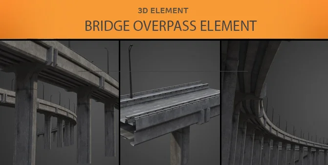 A single 3D bridge overpass section designed to be modular. The model is provided in OBJ format, making it compatible with any 3D software. It includes UV mapping and comes with textures generated in Substance Painter. Additional scene elements are included to demonstrate possible configurations.