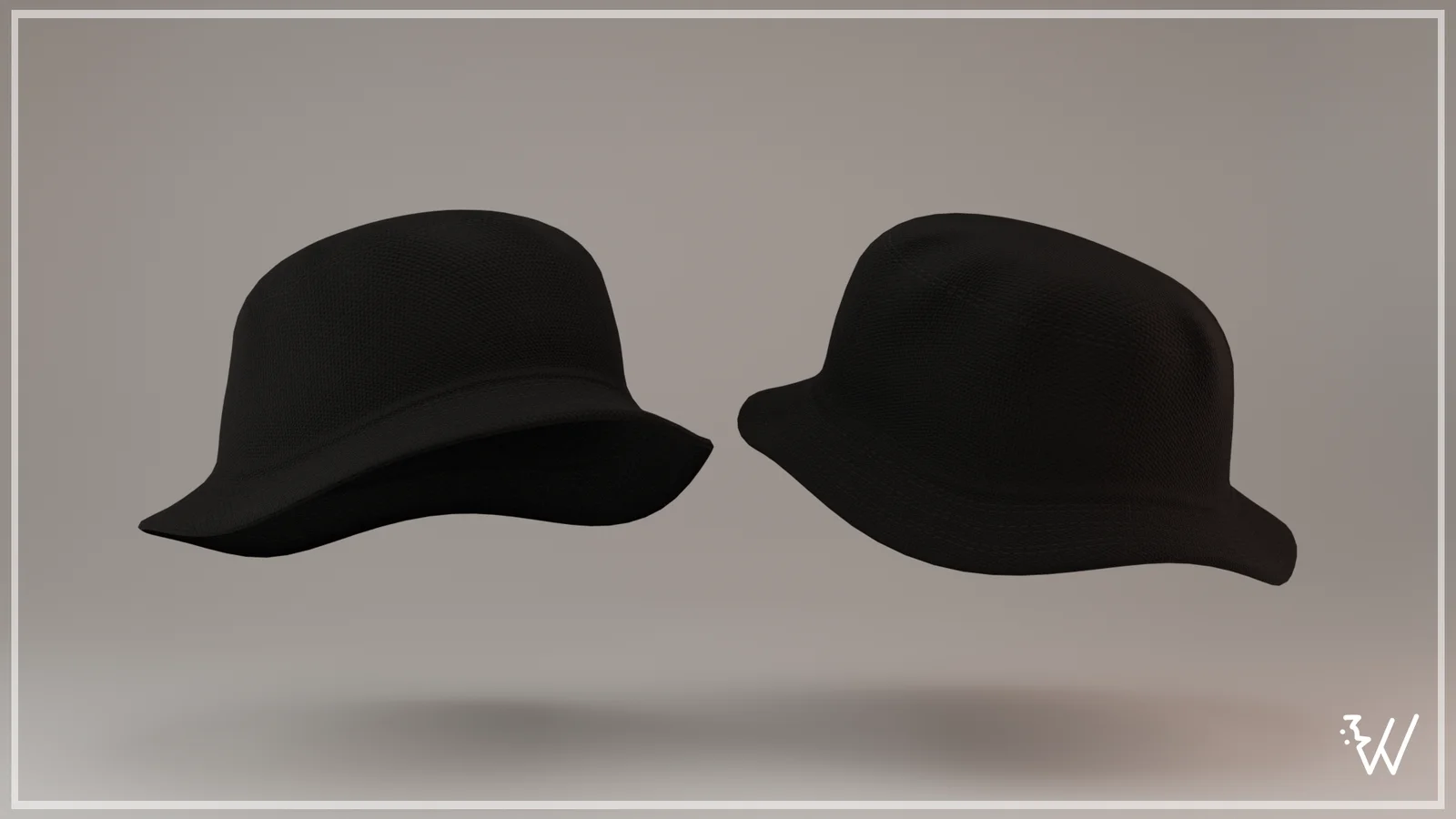 This is a 3D model of a bucket hat provided in FBX format. The mesh contains 3,902 polygons and features clean topology along with unwrapped UVs. It is unrigged and does not include any weight painting.