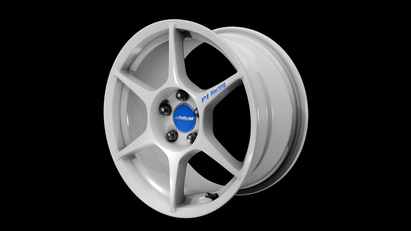 A photomatched, game-ready 3D model of the Buddyclub P1 Racing G1 wheel. The asset features primarily quad-based topology and is optimized for use in real-time applications and game engines. It includes a complete set of PBR textures, providing base color, metallic, roughness, normal, and ambient occlusion maps. The standard download is provided as an FBX file.