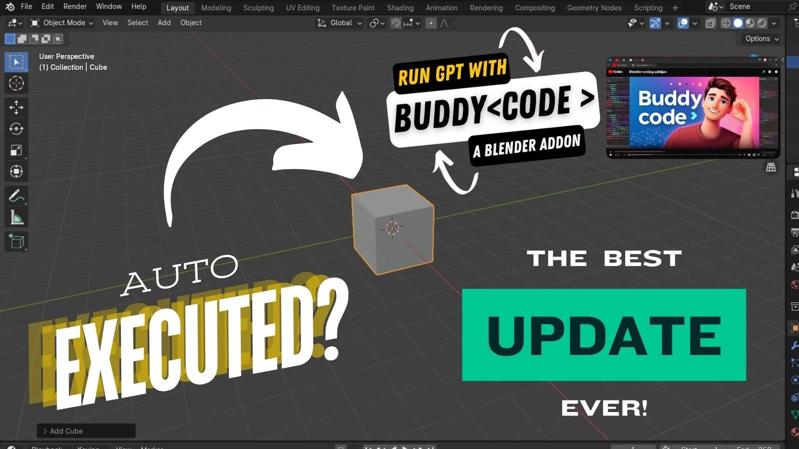 BuddyCode is an add-on that integrates AI-assisted code generation and execution directly into Blender's native Text Editor. It functions as an automated coding assistant capable of writing, evaluating, and debugging Python scripts. The tool also includes a dedicated file browser panel to help organize and manage script files within the workspace.