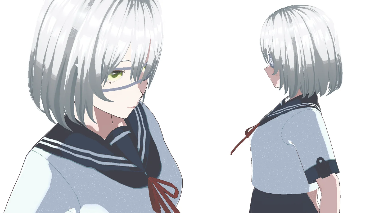 This is a fully rigged, anime-style character model equipped with an integrated toon shader. The bundle includes four character variations: a base model for custom clothing, a school girl uniform, a kimono, and a fantasy outfit.