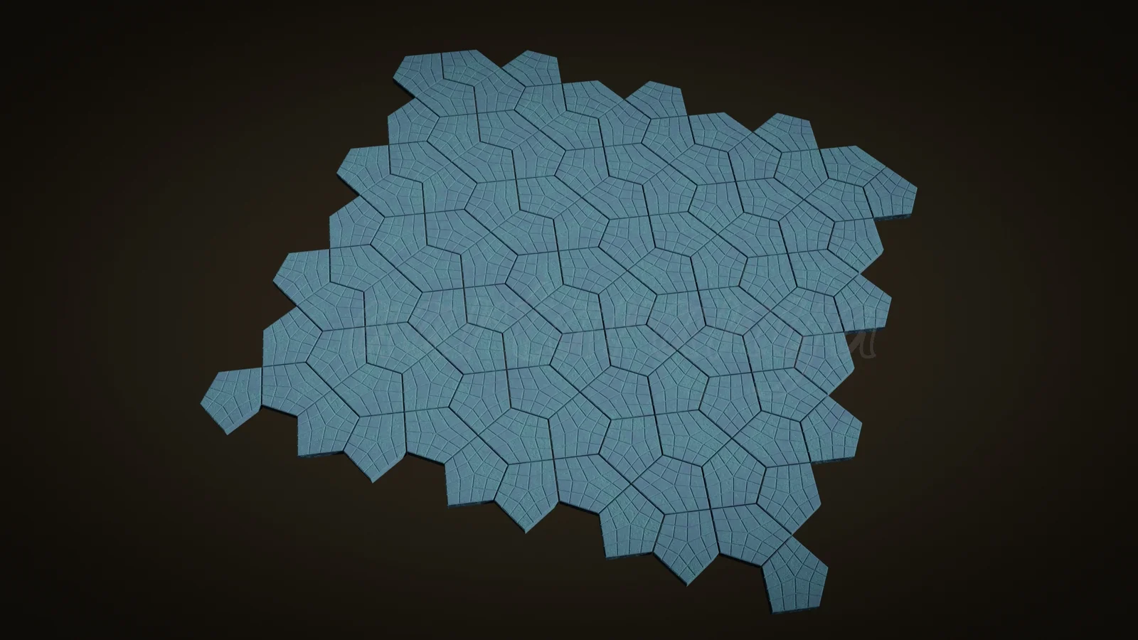 Additionally, the package contains two curve pattern generators that output curve grids based on variations of the Cairo tiling structure. A basic colored concrete paver material is also included. The node setups are configured as assets for use in the Blender Asset Browser.