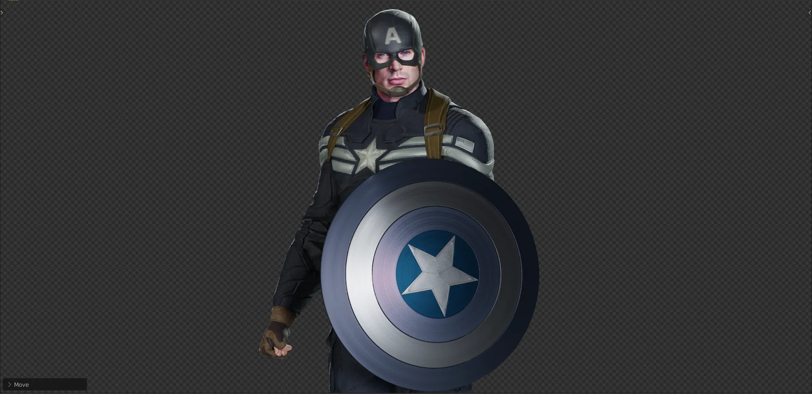 This is a rigged and textured 3D character model of Captain America (Steve Rogers) from The Winter Soldier. The Blender file includes four predefined pose assets and his characteristic shield. A custom slider allows for color adjustments to the shield.