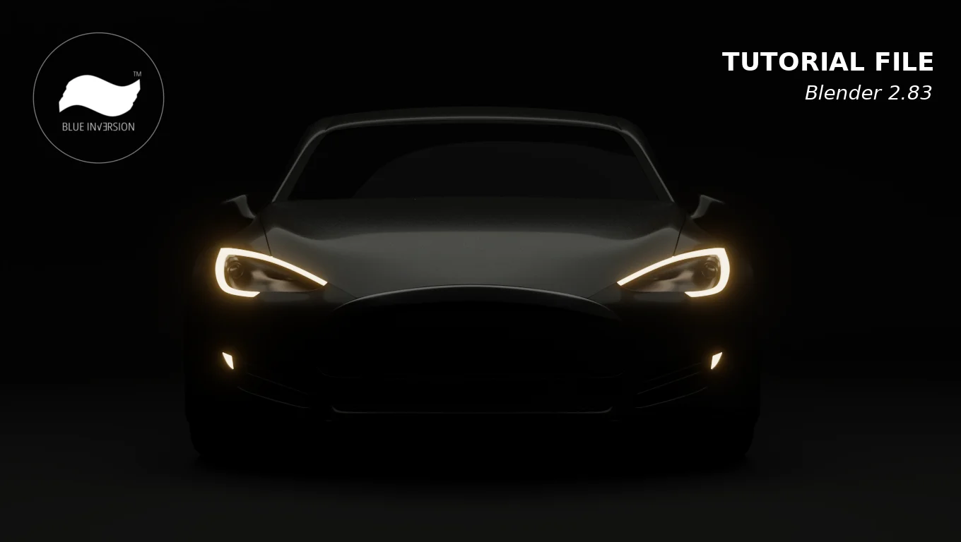 A complete 3D car scene provided as a companion file to a YouTube Blender course. The project file includes a car model styled after a Tesla Model S, complete with configured shaders, a lighting setup, and animation data.