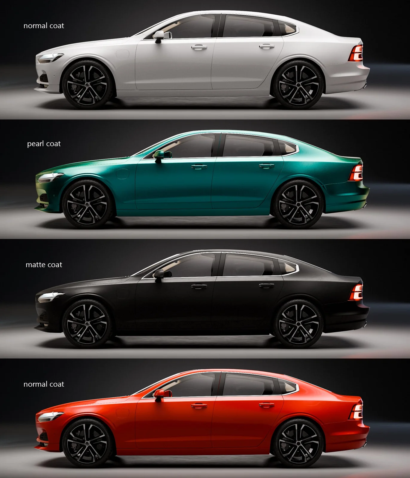 A shader node setup designed to generate a variety of car paint finishes in Blender. The procedural material provides adjustable parameters to customize the look of automotive exterior surfaces.