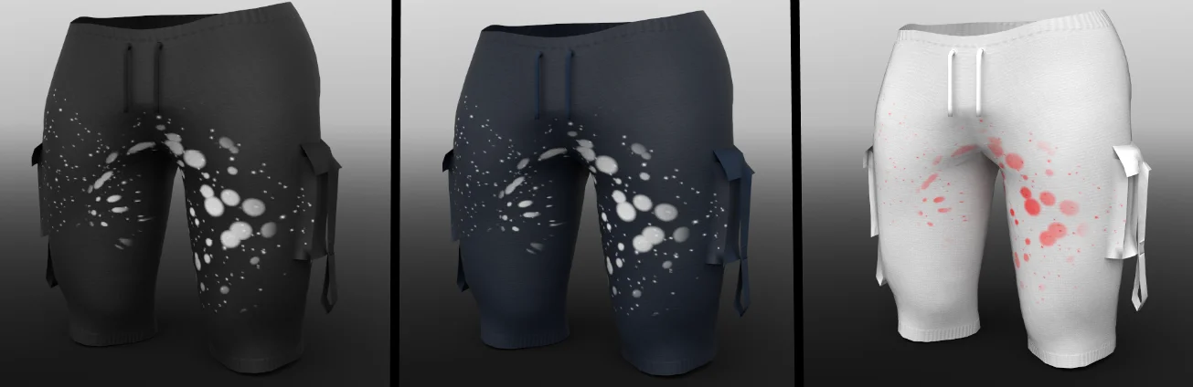 The package provides the project files across multiple formats to allow for further customization. It includes the original Blender file, the Substance Painter project for texture modification, and the Marvelous Designer source file used for the initial garment simulation.