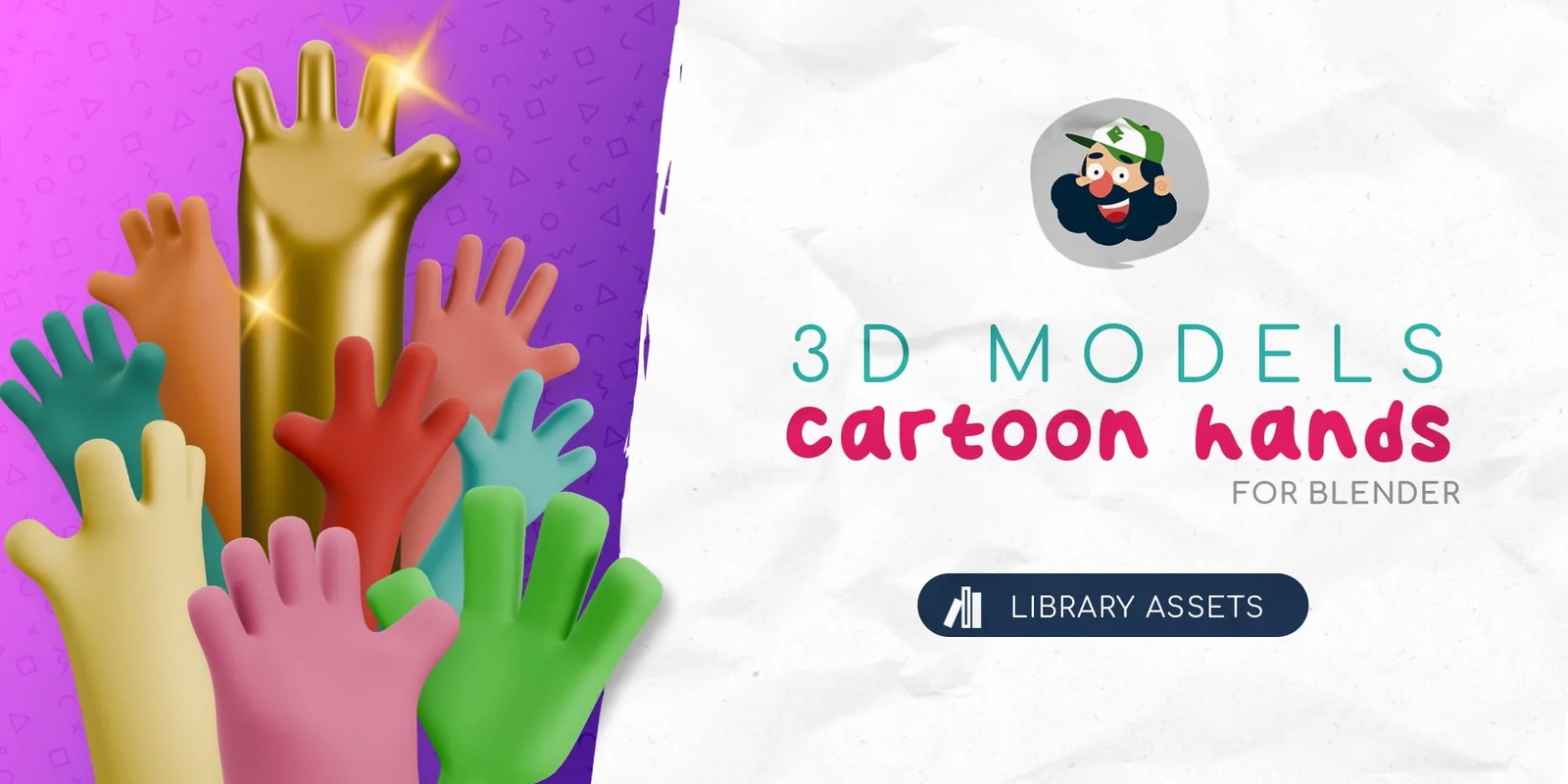 Cartoon Hands is a collection of 15 unrigged 3D hand models designed for stylized and cartoon characters. The pack includes twelve four-finger variations and three five-finger variations based on nine core designs. All models are provided as low-poly, untextured base meshes, ready for custom materials and skeletal rigging. The files are configured for direct integration with Blender's Asset Browser and include custom thumbnails for visual sorting.