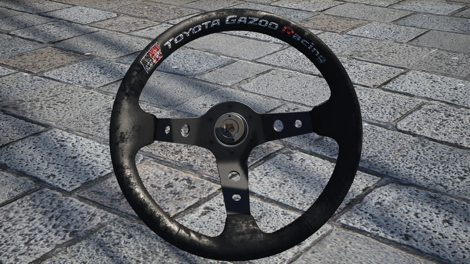 This product provides a custom 3D model of a Toyota Gazoo Racing steering wheel. The asset consists of five individual objects and four materials, structured for vehicle interior applications. It features a polygon count of 7,847 and is provided in the KN5 format.