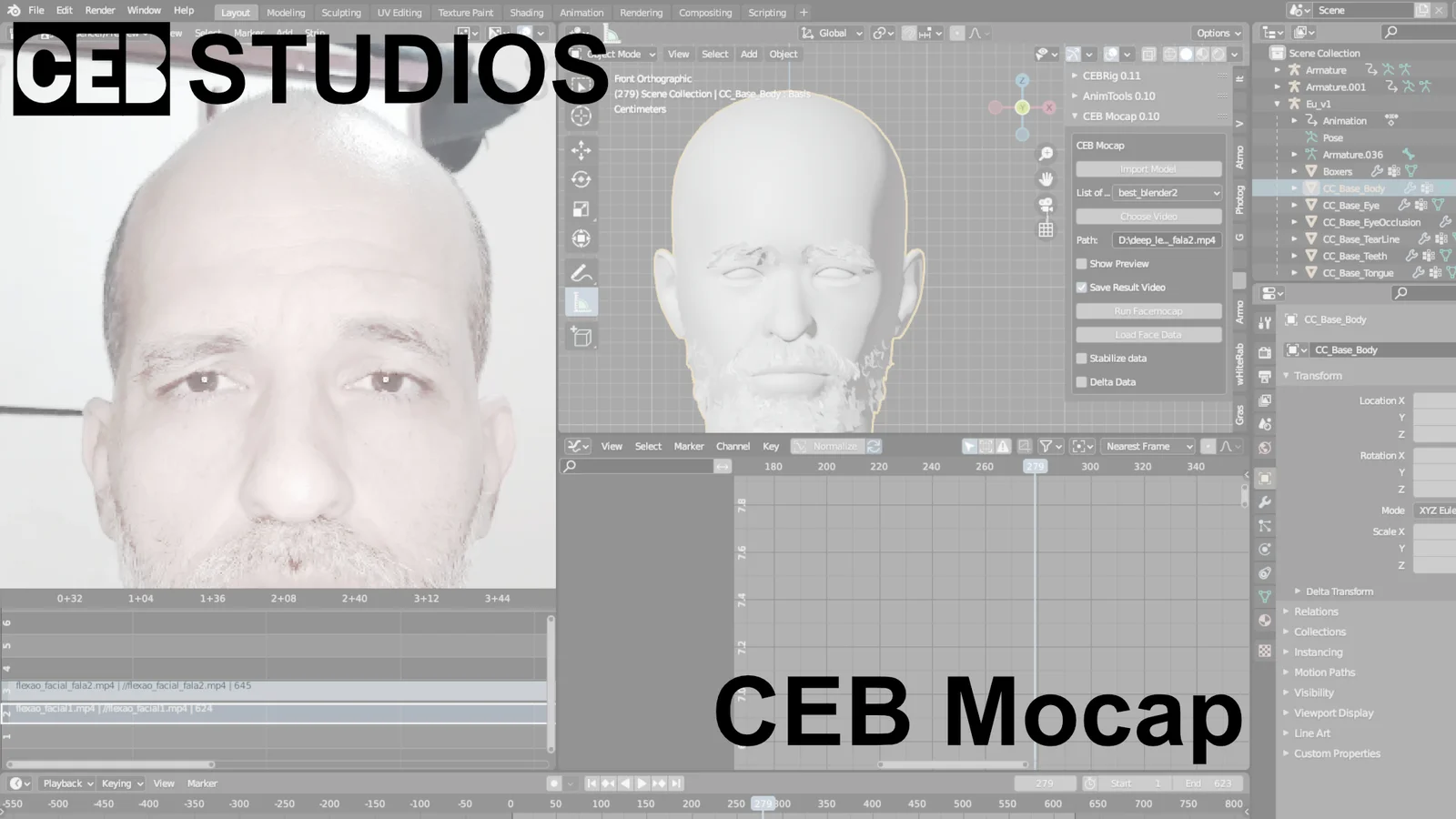 CEB Mocap is a motion capture tool for Blender that utilizes machine learning to track facial and 2D motion data. Powered by YOLOv5 and DeepSort, the tool includes trained models specifically designed to track key facial points, including the inner and outer eyebrows alongside the top, bottom, and sides of the mouth. The toolset features utilities for processing captured motion, including options to filter unstable tracking data, clean keyframes, and smooth keyframe interpolation. It currently requires the use of a custom Blender build included with the product files, and allows users to import and utilize their own custom tracking models.