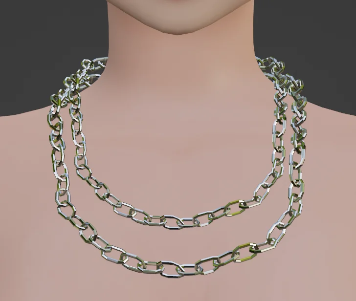 A 3D model of a chain necklace designed for character and avatar creation. The asset consists of 17,000 triangles and is provided in both rigged and unrigged formats.