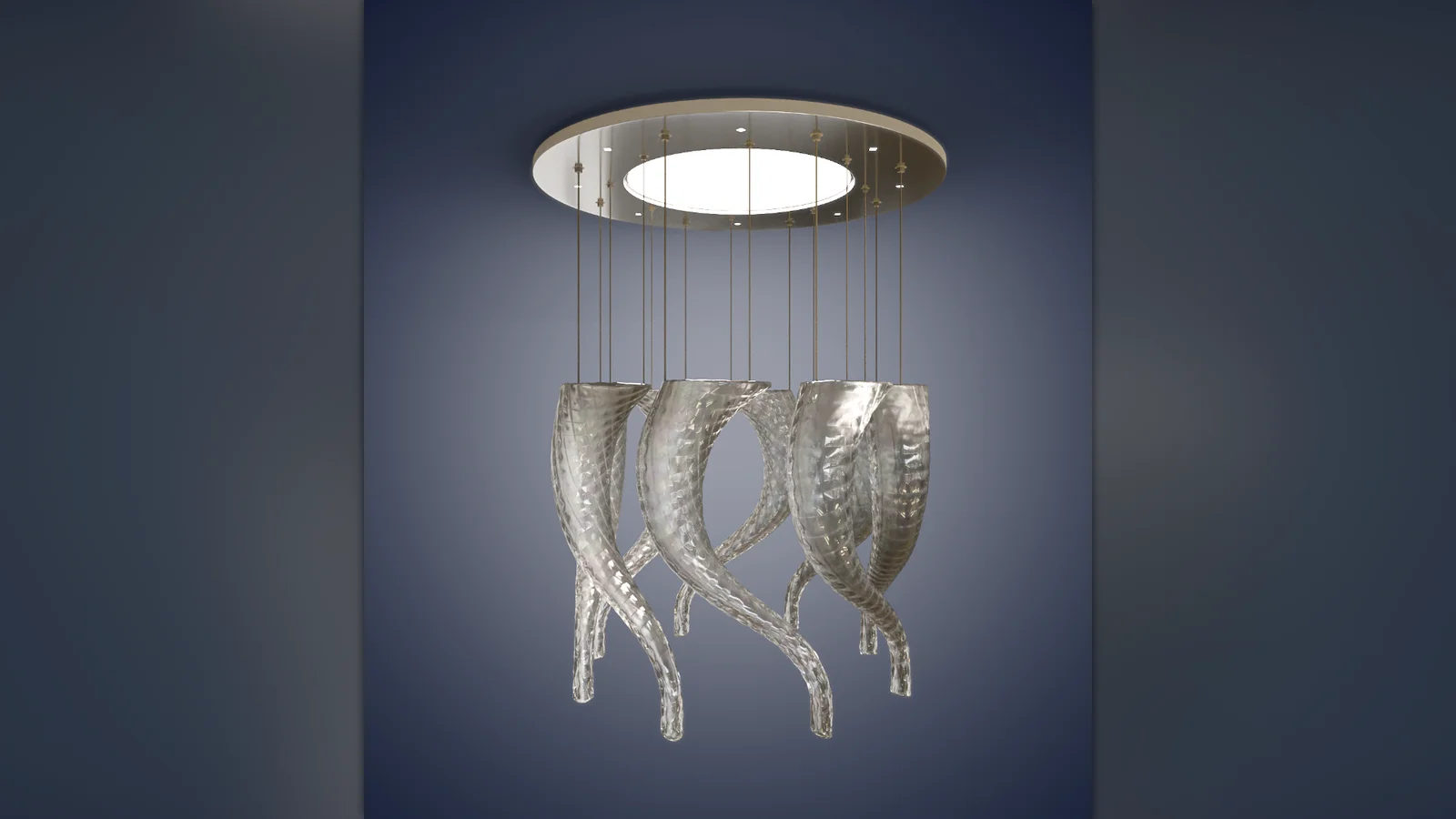 A detailed 3D model of a chandelier for interior scenes. Distributed as a .blend file, the model utilizes modifiers to allow for non-destructive adjustments and easy customization. It is organized into a collection for straightforward linking or appending into existing projects, and is suitable for both daytime and nighttime lighting setups.
