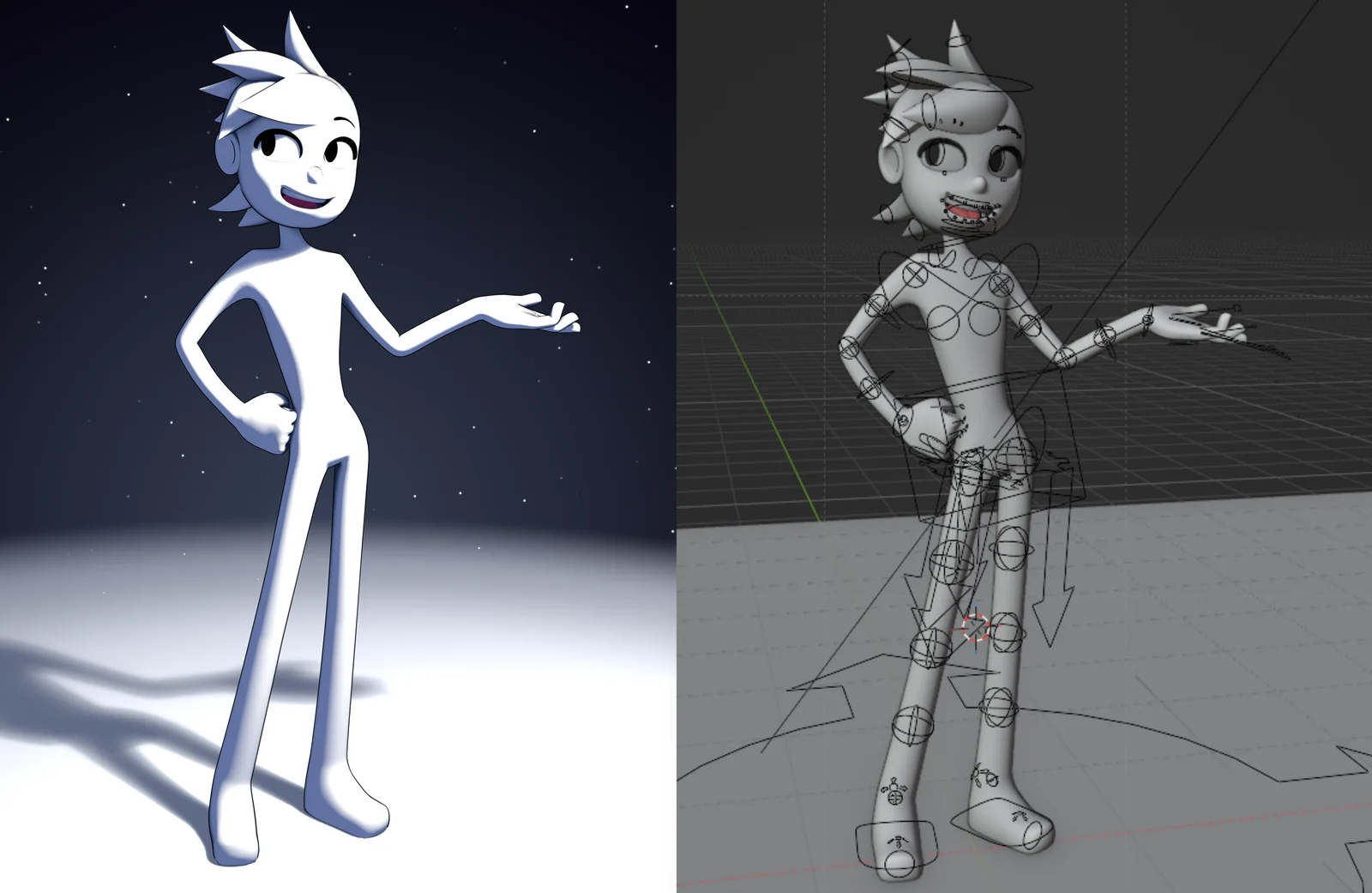 This is a complete, fully rigged character model originally created for a beginner character modeling tutorial series. The asset includes the scene file with the character rigged using Blender's built-in Rigify system, optimized specifically for the EEVEE render engine. In addition to the model, the package contains the associated textures and the original reference images used during the tutorial creation process. It serves as a practical example for studying character topology, rigging techniques, and material setups.