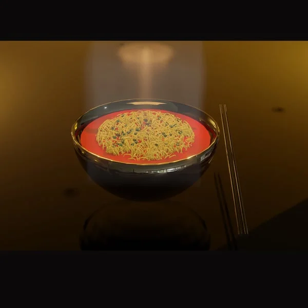 This product provides a tutorial on creating a 3D model of Chinese noodles using Blender. The instructional content is spoken in slow Chinese, designed to be visually easy to follow step-by-step. The package includes one tutorial file and a completed animation file demonstrating the final result.