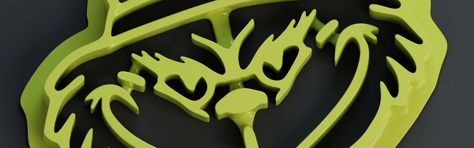 This is an STL file for a 3D printable cookie cutter featuring a smiling Grinch wearing a Santa hat. The model is designed for 3D printing and measures approximately 9cm by 9cm.