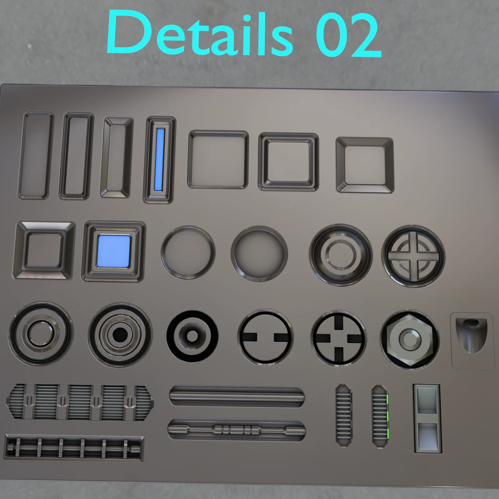 This collection includes 36 detailing decals prepared for use with the Decal Machine add-on. Each decal is baked at a 1024 resolution with 4x sampling. They can be unpacked directly into the appropriate Decal Machine directory to be instantly detected and utilized within Blender.